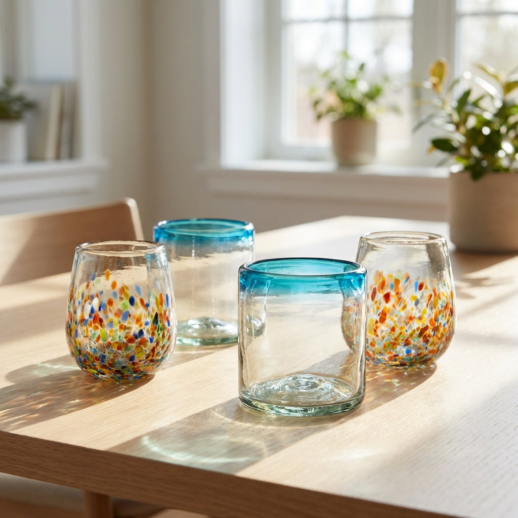 Each glass is shaped by hand from recycled glass.Subtle variations in color and texture are normal and part of the process.